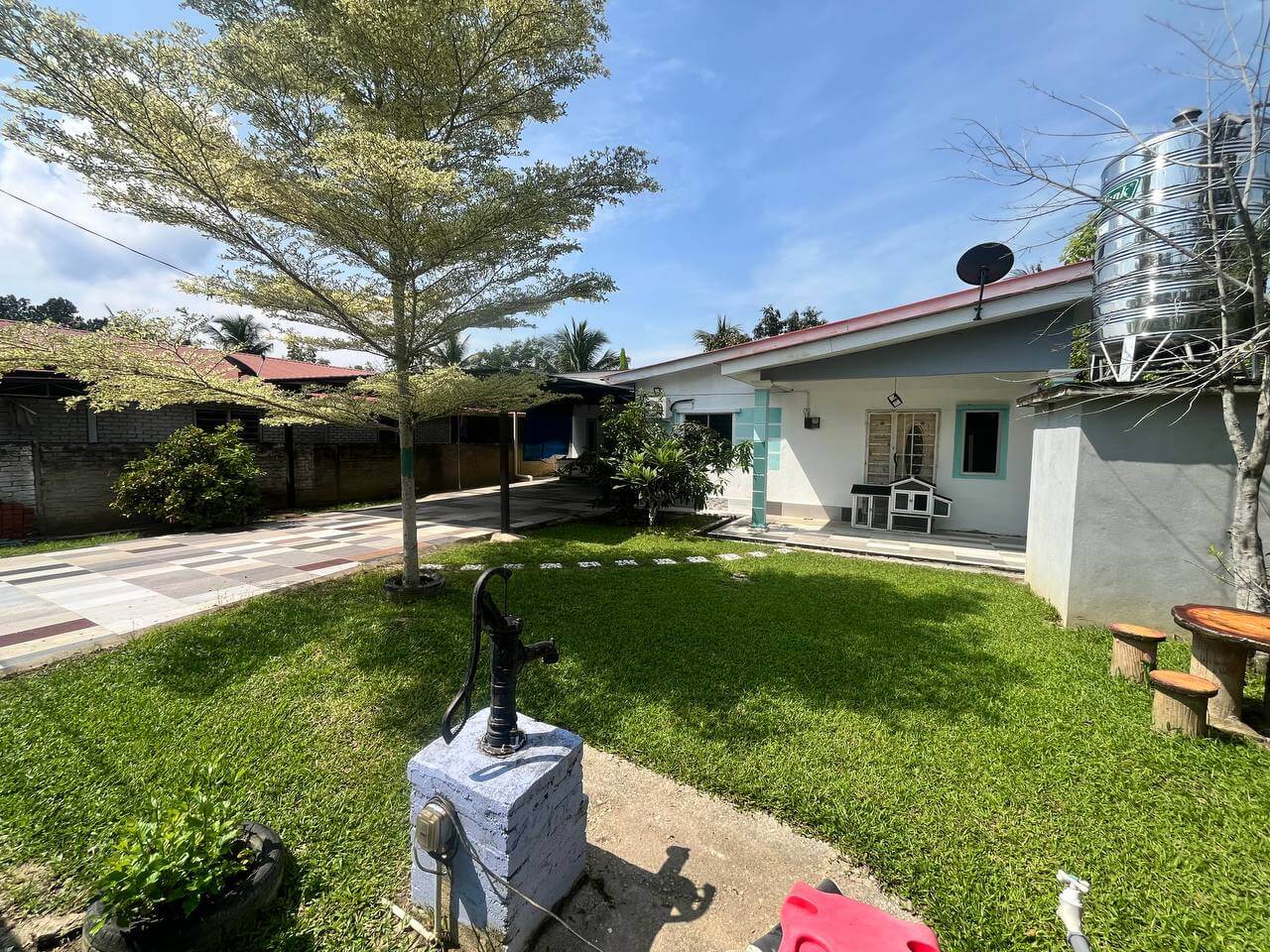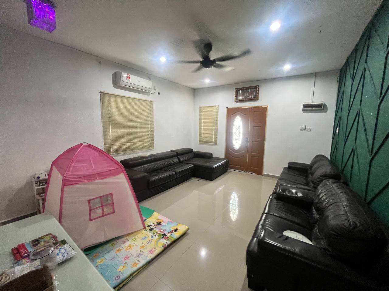 Banglo setingkat ini menawarkan suasana kampung yang nyaman dengan kemudahan lengkap, termasuk kitchen table-top, dua ruang tamu luas, dan halaman dengan tanaman buah-buahan. Rumah fully furnished ini dilengkapi penyaman udara, peti ais, mesin basuh, water pump, kolam, dan sistem solar, sesuai untuk keluarga yang mencari kediaman selesa di Kampung Senggang.