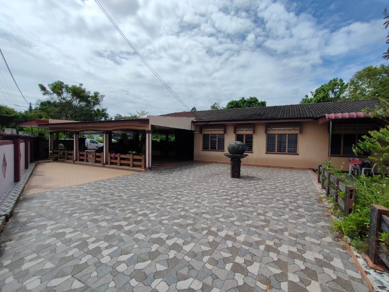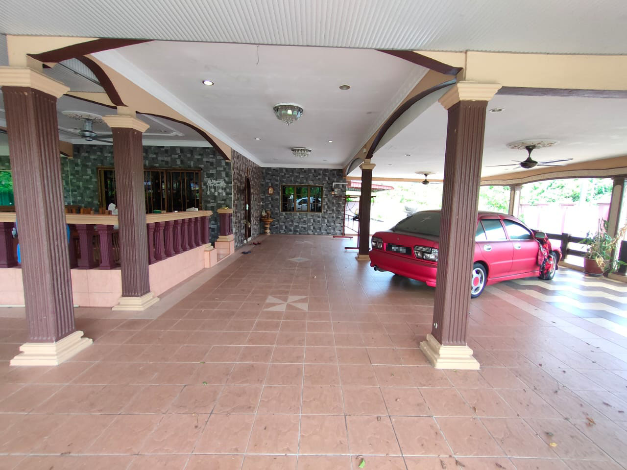 ✅ Ruang parkir dengan jubin penuh sekeliling rumah